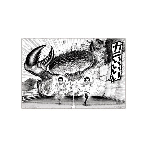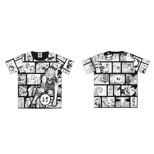 印象的なコマを盛り込んだ、胸面も背面も袖も全面にプリントされたTシャツ。