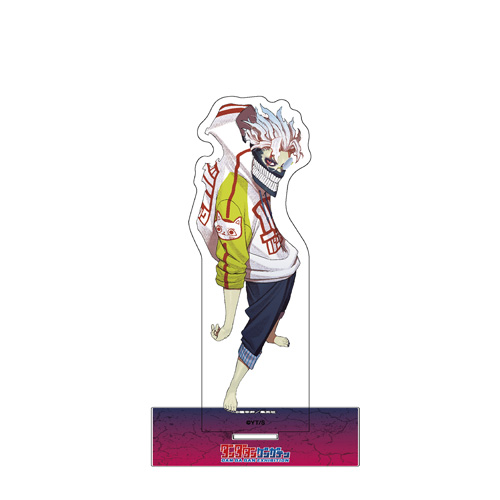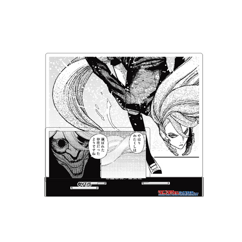 コミック19巻のカバーデザインを表裏プリントしたアクリルキーホルダー。厚みがあり自立可能のため、ボールチェーンを外して飾って楽しむこともできます。