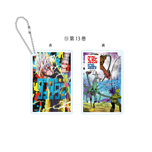 コミック13巻のカバーデザインを表裏プリントしたアクリルキーホルダー。厚みがあり自立可能のため、ボールチェーンを外して飾って楽しむこともできます。
