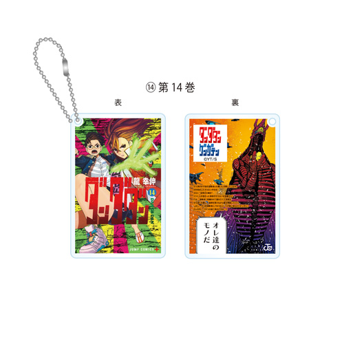 コミック14巻のカバーデザインを表裏プリントしたアクリルキーホルダー。厚みがあり自立可能のため、ボールチェーンを外して飾って楽しむこともできます。